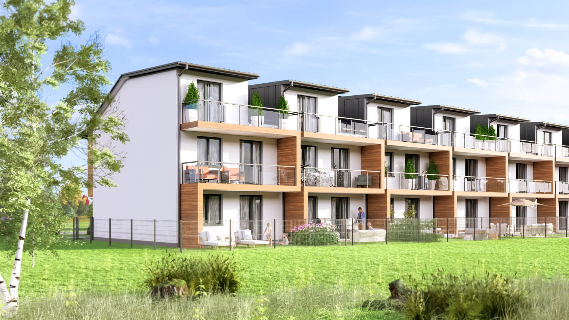 Nasze osiedle harmonijnie łączy optymalne rozwiązania projektowe, wysokiej jakości materiały oraz precyzyjne wykonanie z estetyczną i nowoczesną architekturą. Zróżnicowane metraże mieszkań, opcje z ogródkami lub tarasami z poddaszem, stwarzają naszym klientom wyjątkową możliwość indywidualnej aranżacji przestrzeni zgodnie z ich preferencjami i potrzebami.