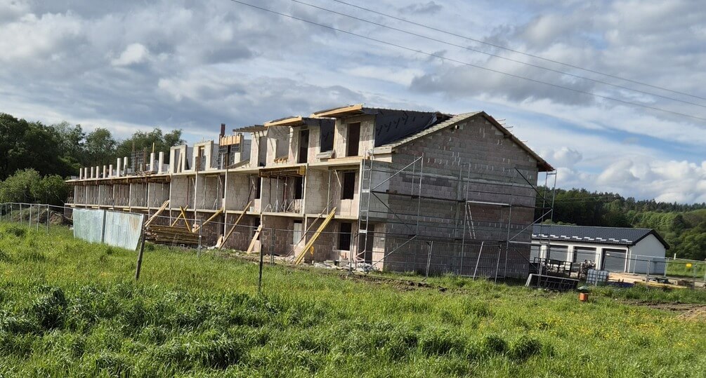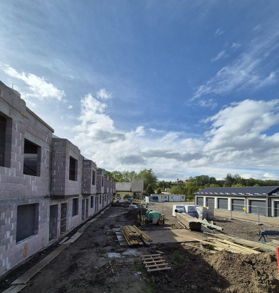 Postępy w budowie na dzień 30.04.2025 Zakończyliśmy pracę nad stropami nad parterem oraz I piętrem, ścianami konstrukcyjnymi I piętra oraz ścianami attyki.